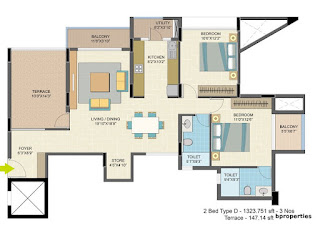 Nitesh Caesars Palace Floor Plan - 2 BHK - 1323 Sq Ft + Terrace 147 Sq Ft Type - D :